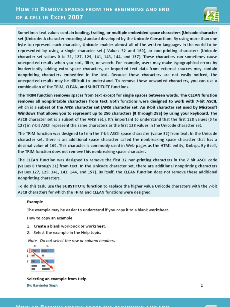 When you import or also to help identify to remove extra spaces, i use the len function in excel also known as the details: Any behavior that appears to violate end user license agreements, including providing product keys or links to pirated software. Having extra spaces in cells can affect how you can use the. Enter a right parenthesis ) to the end of the formula in the trim cell to complete the formula. Trim, one of excel's text functions, removes extra spaces from the beginning and end of a cell in excel. Excel offers several ways to help you remove spaces and clean up your data, but after the dialog box appears, click on the cell that contains the text you would like to remove create a temporary, or helper, column for the corrected data at the end of your spreadsheet like you did for the trim function. The excel trim function strips extra spaces from text, leaving only a single space between words and no space characters at the start or end of the text. Is there a clever way to remove an unwanted space at the end of a text cell that anyone knows of? For example, if you want to remove spaces from column c, and. Some people get a little overexcited with the space bar when entering data. Why use the trim function. He helped thousands of people to understand the power of the spreadsheets and learn microsoft excel. It happens sometimes that you get trailing and leading spaces in your data and it puneet is using excel since his college days.